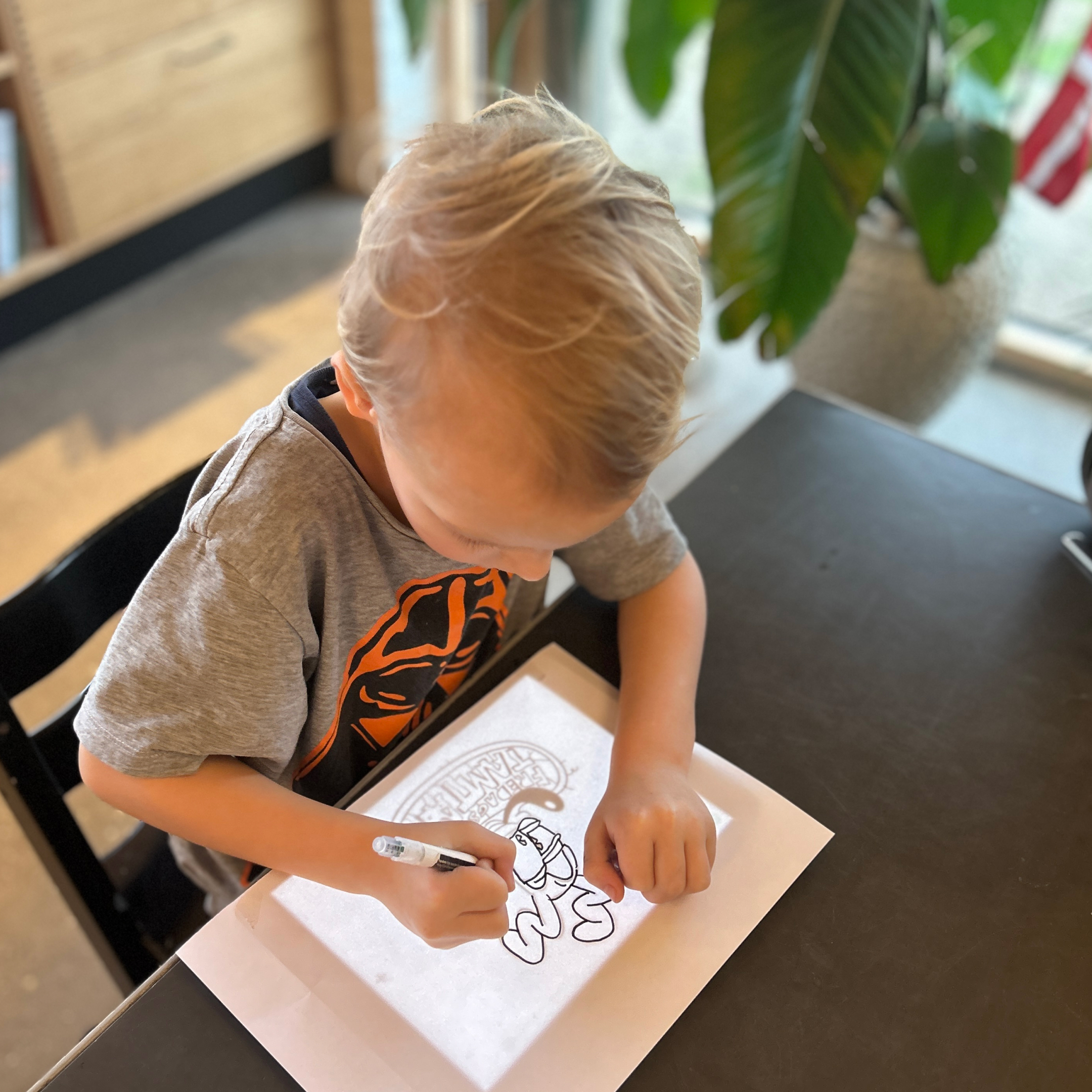Inside the Creativity Hut, we’ve designed a desk shaped drawing board where kids can practice and gain new skills.