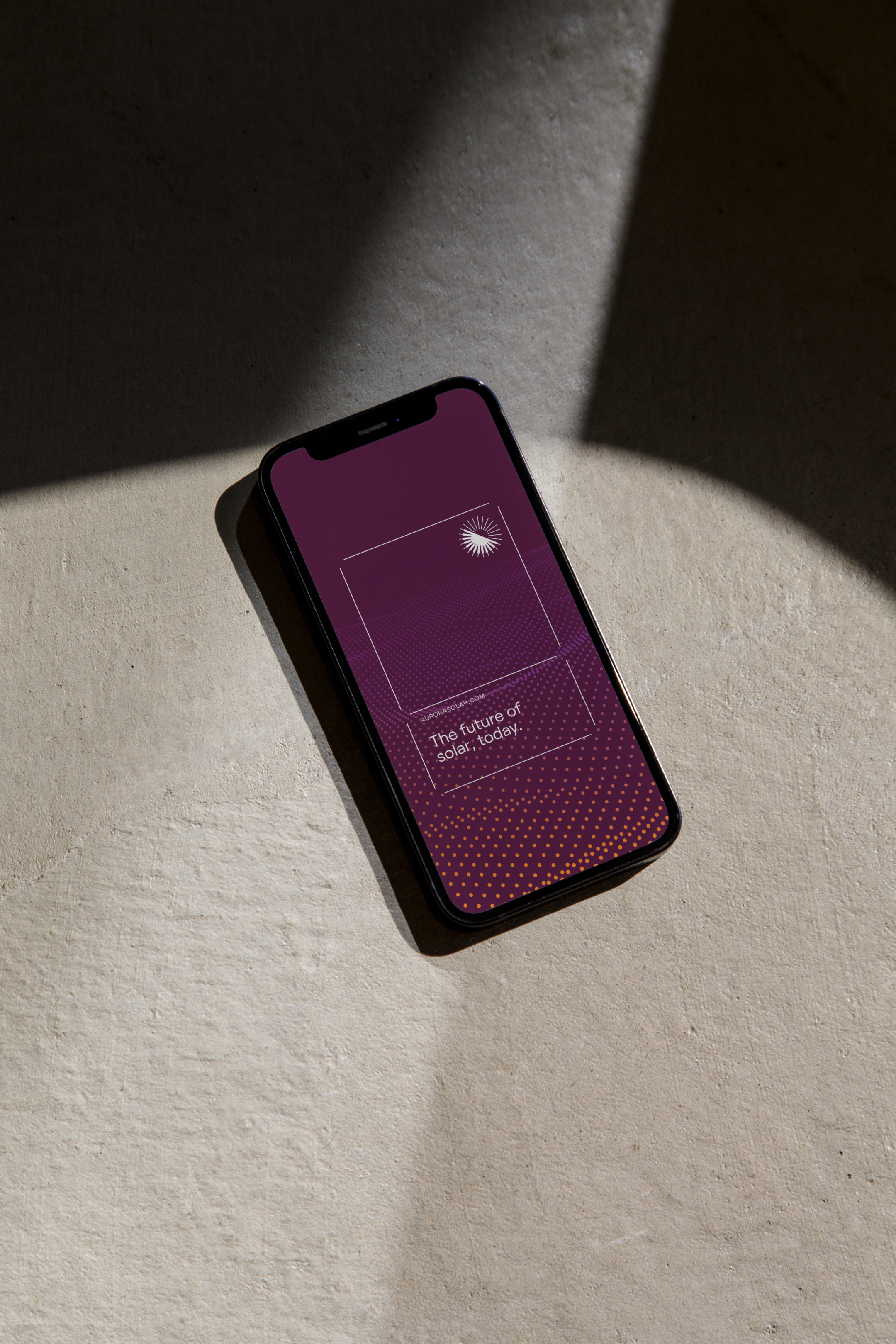 The frame is used as a dynamic visual element, bringing the idea of the solar grid into the brand story.
