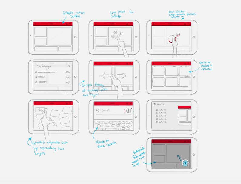 Drawing wireframes is a great way to keep the process fun and interactive from start to finish. Here are some examples.