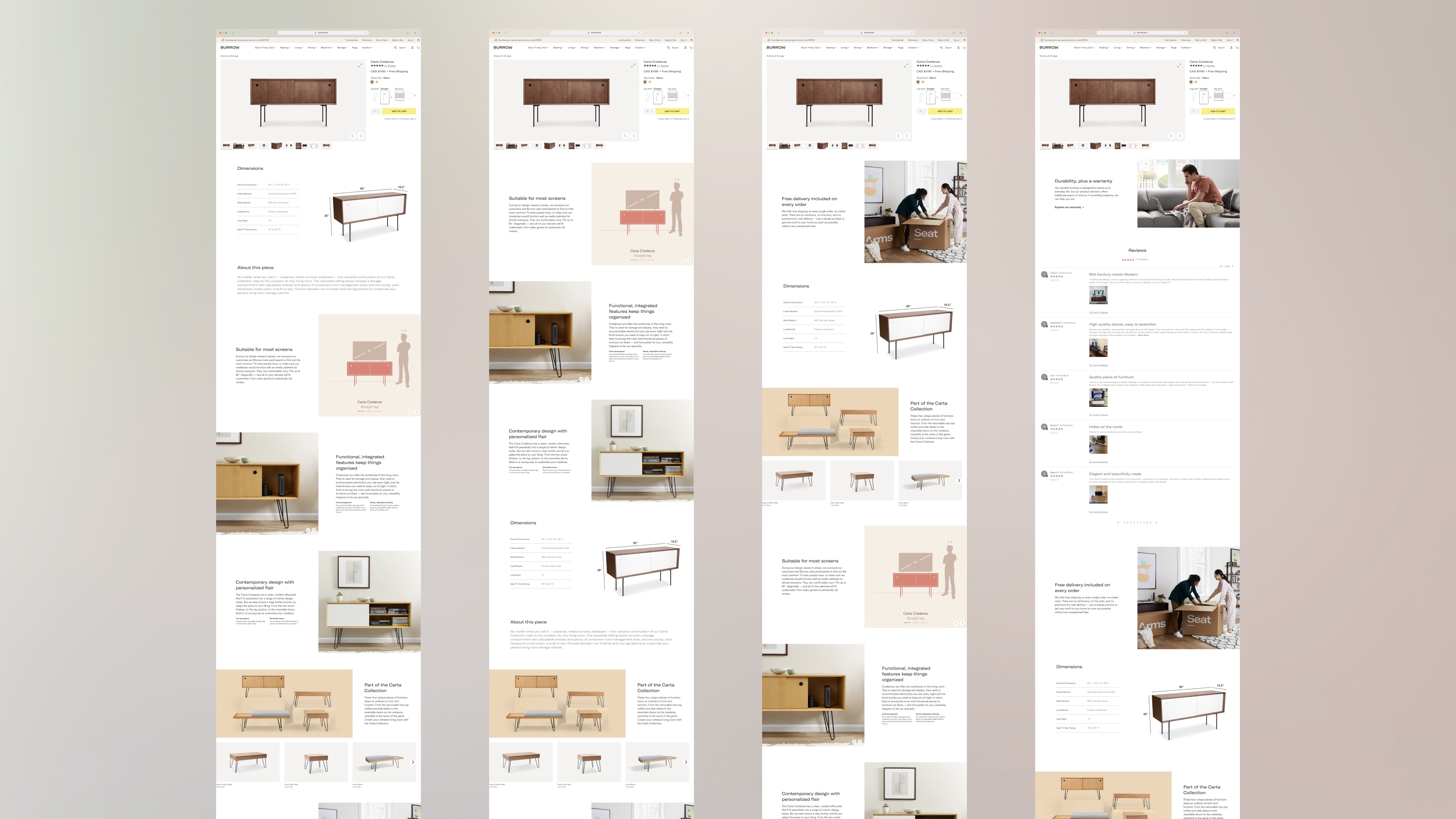 Perhaps you want to explore how modular furniture pieces can be configured. If customer reviews are essential to you, you could choose to "Show reviews in context," and the site would integrate user testimonials and ratings right next to the products.