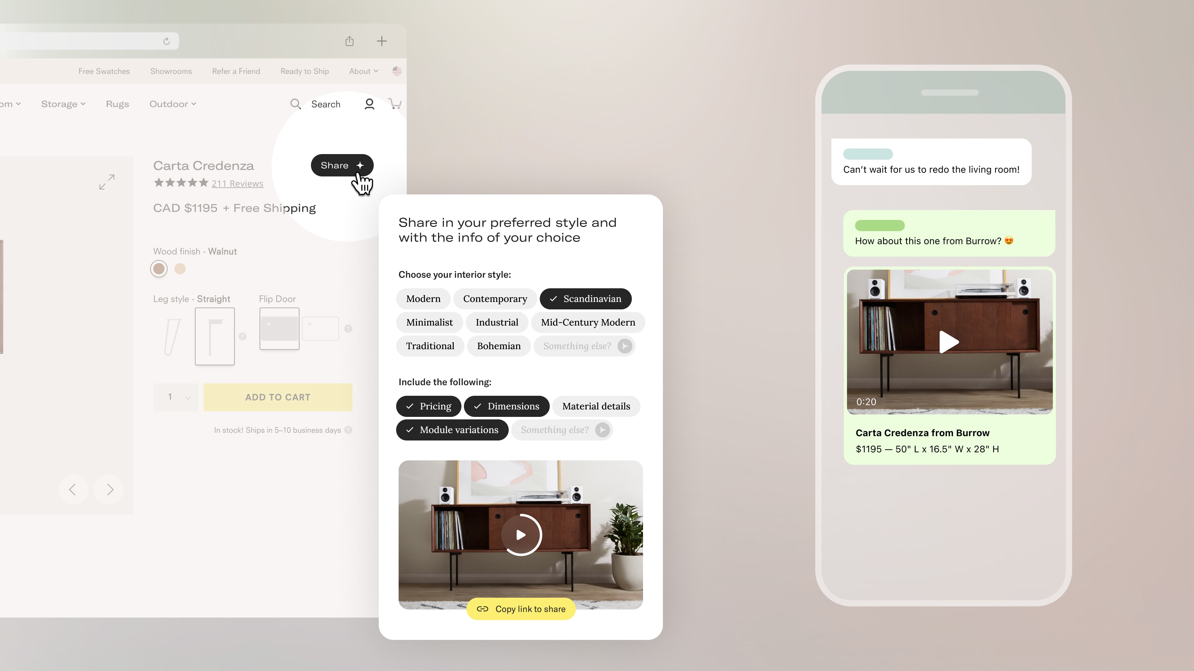 Imagine you're browsing a product that you want to share with your partner or a friend. Instead of just sending a link to the product page, an AI-enhanced sharing feature could enable you to customize how the product is presented. You could select an interior style that matches the recipient's taste or the context in which they might use the product.