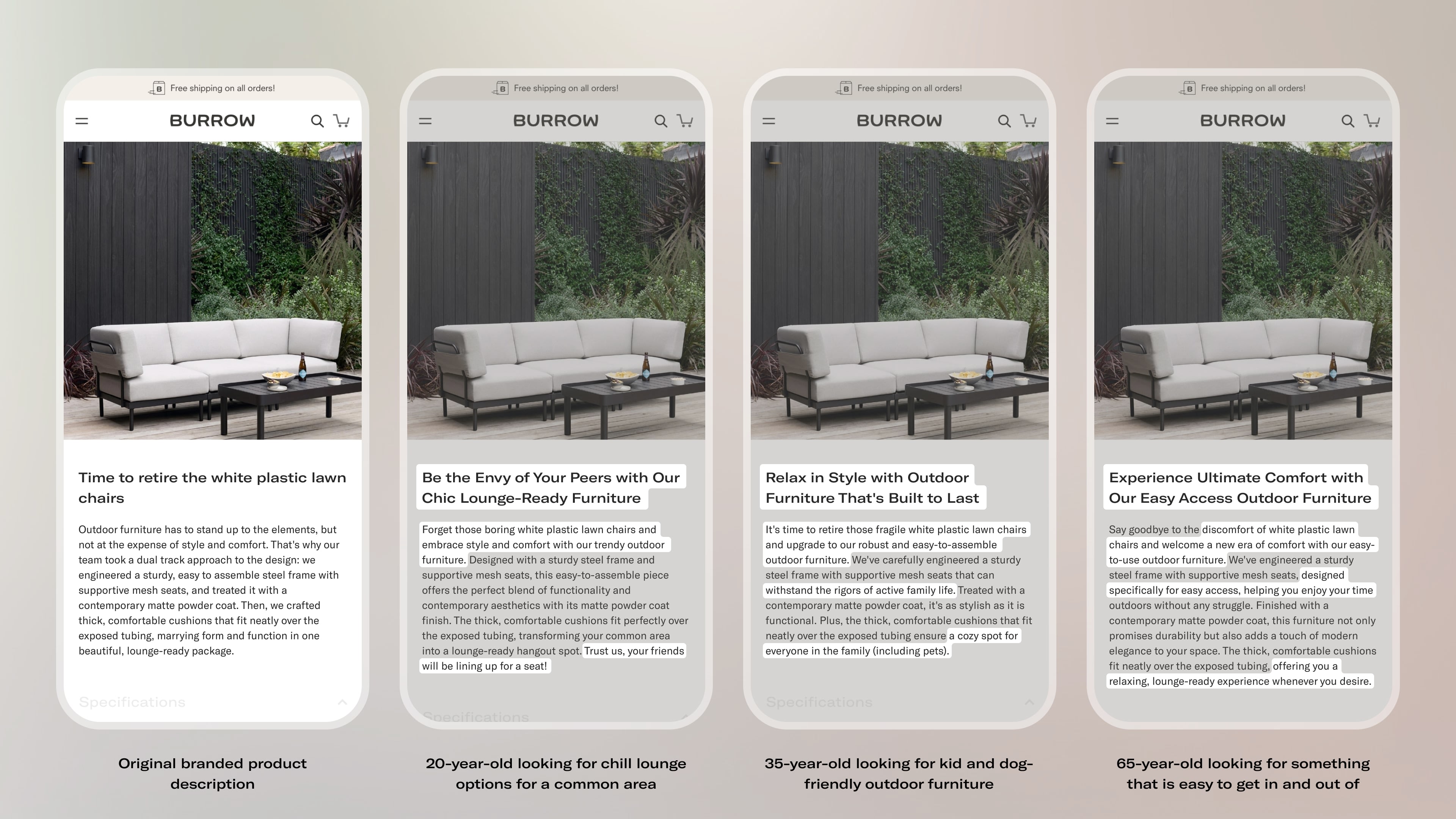 When collaborating with a brand like Burrow, our goal is to ensure that the generative AI serves the specific needs of this business. That's why the ideas below are all based on the concept of what we are calling a Brand Language Model…
