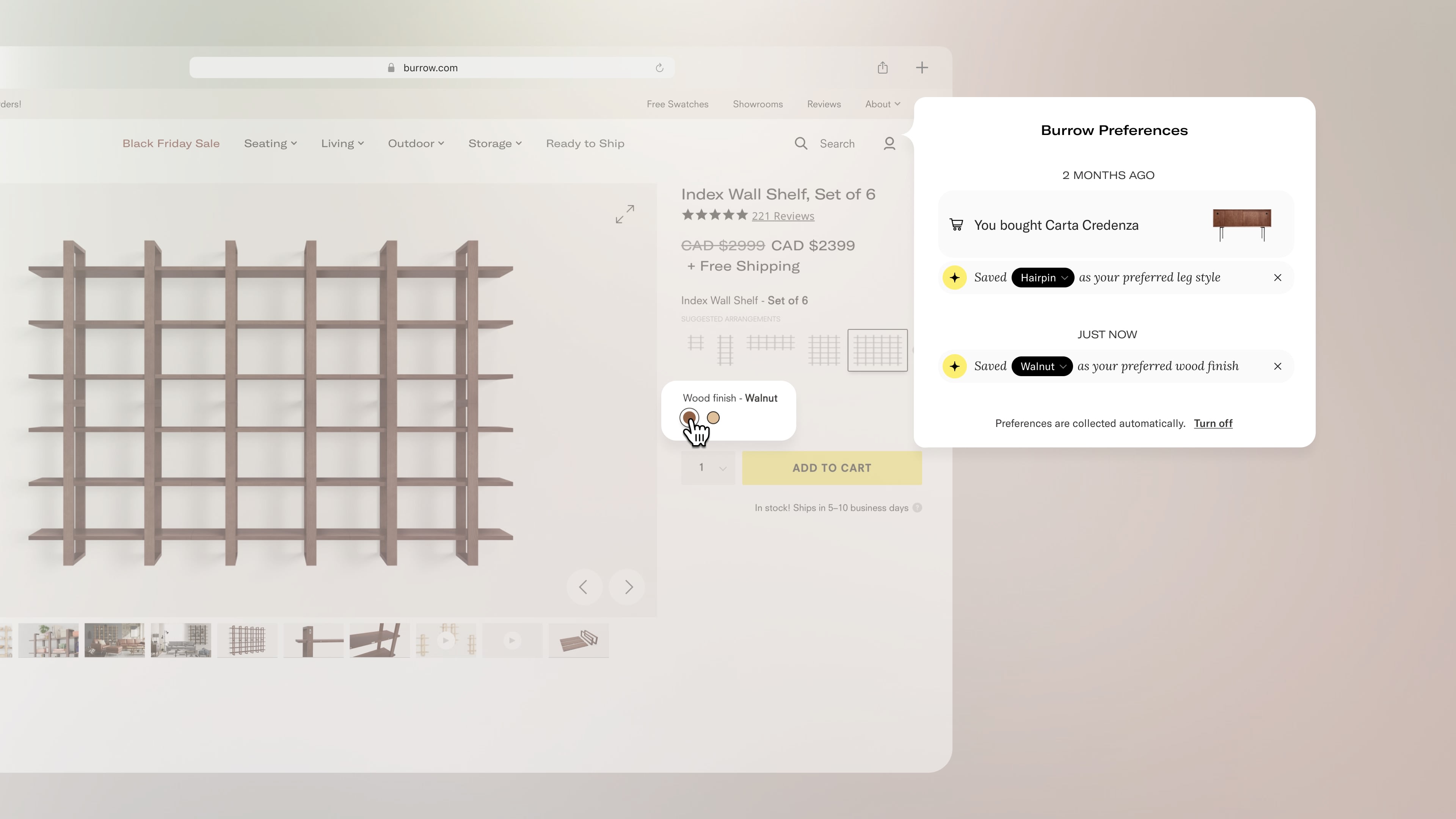 If you purchased a piece of furniture with hairpin legs two months ago, the AI takes note and assumes that's your style preference. Alternatively, perhaps you recently selected a walnut finish for a shelf, prompting the AI to update your profile to favor walnut finishes. If the AI makes a mistake, such as assuming you love walnut when you don't, you could correct it. You might even have the option to dismiss certain preferences or deactivate the tracking feature entirely.