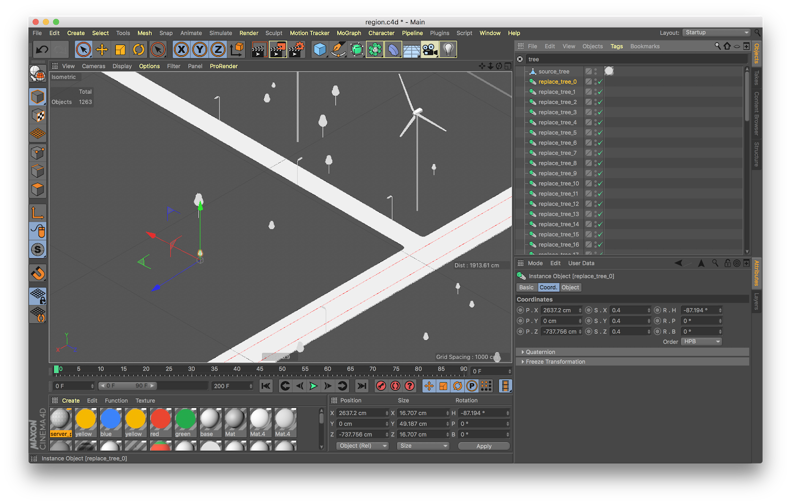 Turns out it’s quite easy, we simply landed on a naming convention where we name source geometry objects: source_object_name and then all the instanced objects are named: replace_object_name_X. Here’s a screenshot of how that looks for the trees: