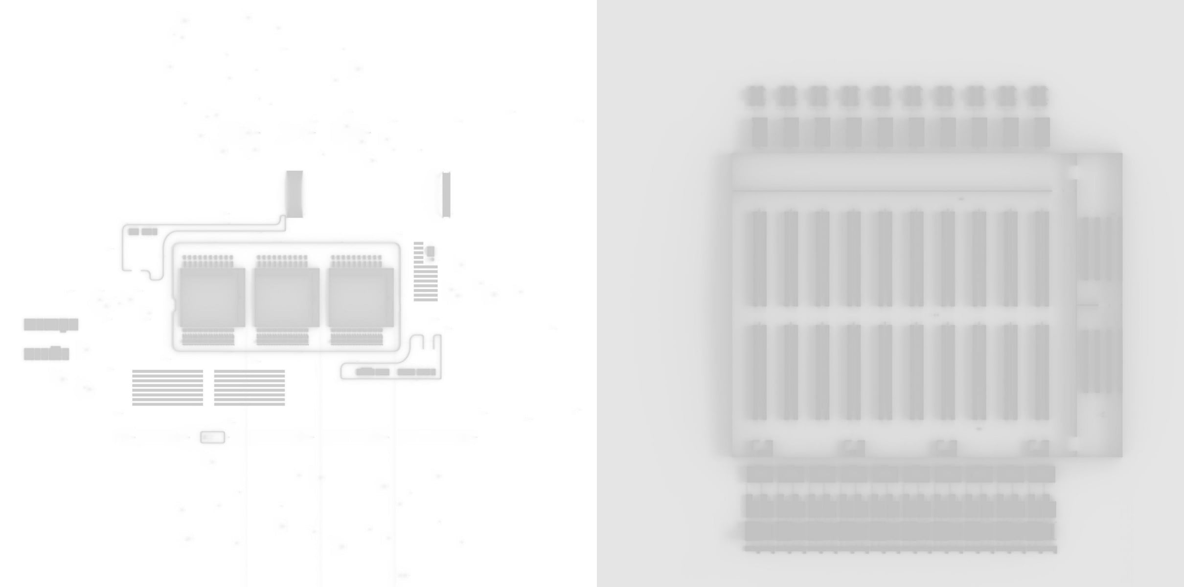 We knew we wanted a fairly minimal 3D look with emphasis on subtle greyscale variations as well as a few main colors from the Google Cloud color scheme. The first thing that came to mind was to try and go for a classic ray-traced clay-style with nice beautiful soft shadows, a look well known from architectural renderings. So even before we knew what the final models where gonna be, we started exploring if this was possible.