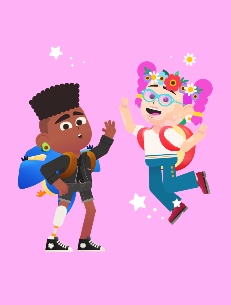 As part of creating the larger branding system for Google Kids Space, Hello Monday worked closely with Google to develop a character system that is optimized for customization. We created a diverse set of 1,000+ clothes and accessories that are linked to interests, popular culture references and guided by international specialists. Within the avatar builder kids can customize their own avatar by choosing unique personal features, clothing and accessories including country specific attire or even a rocketship backpack. In Google Kids Space, Kids make the rules!