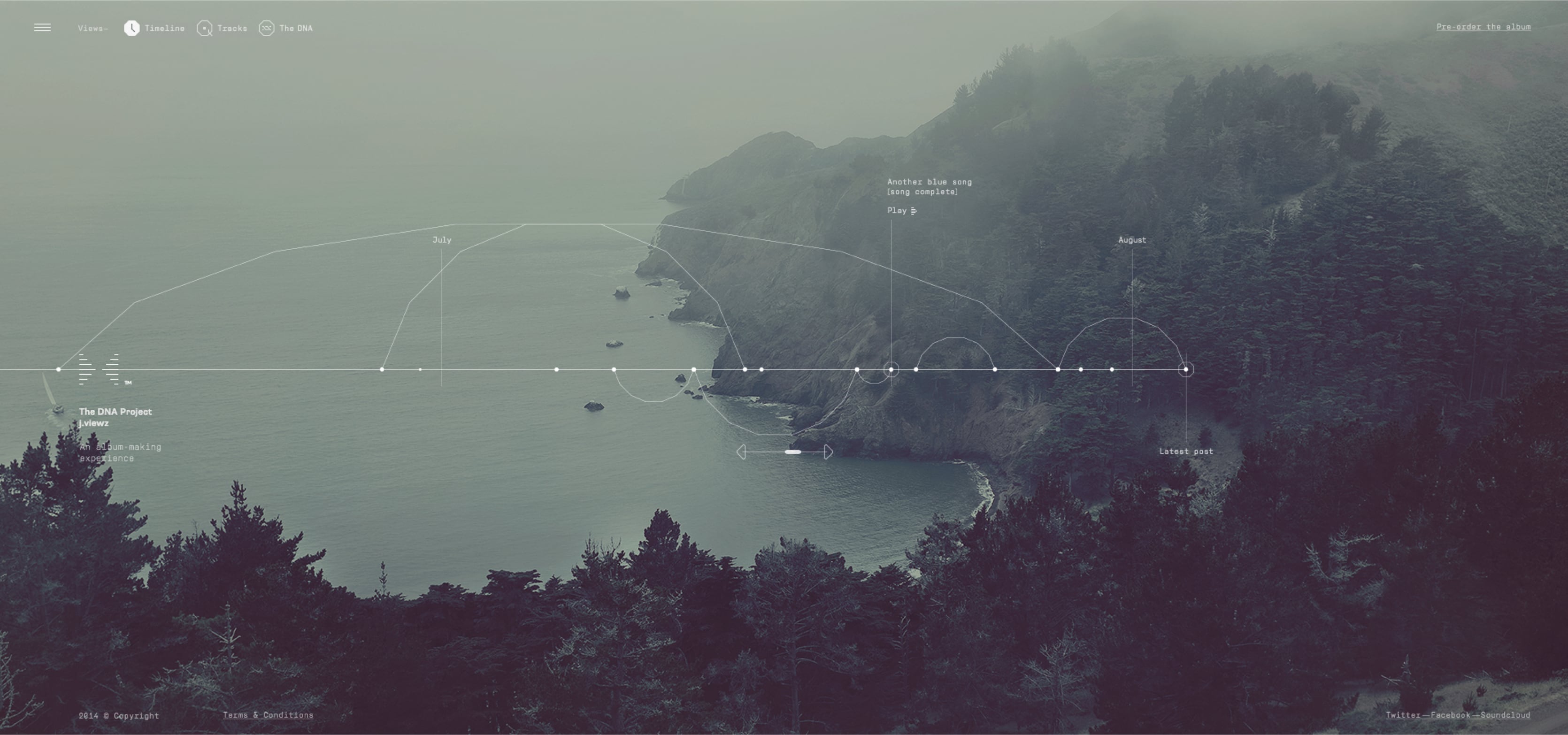 Through lines created in a 3D environment we take the user on a visual journey to explore the development of an album.