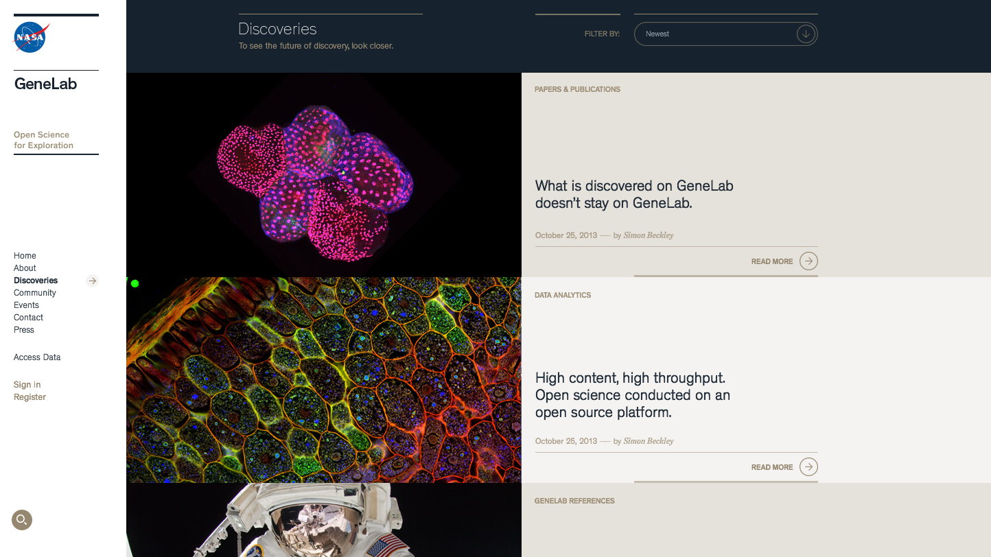 Ok, so maybe it’s not that simple. But you have to start somewhere. In our case, it was helping NASA create a visual identity and platform design for GeneLab that would inspire people, increase funding for the initiative, and galvanize support for the project from the scientific community.
