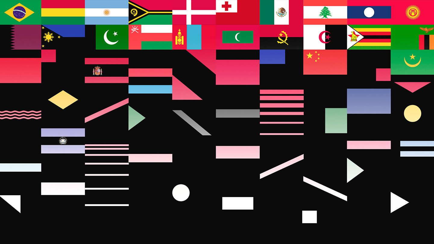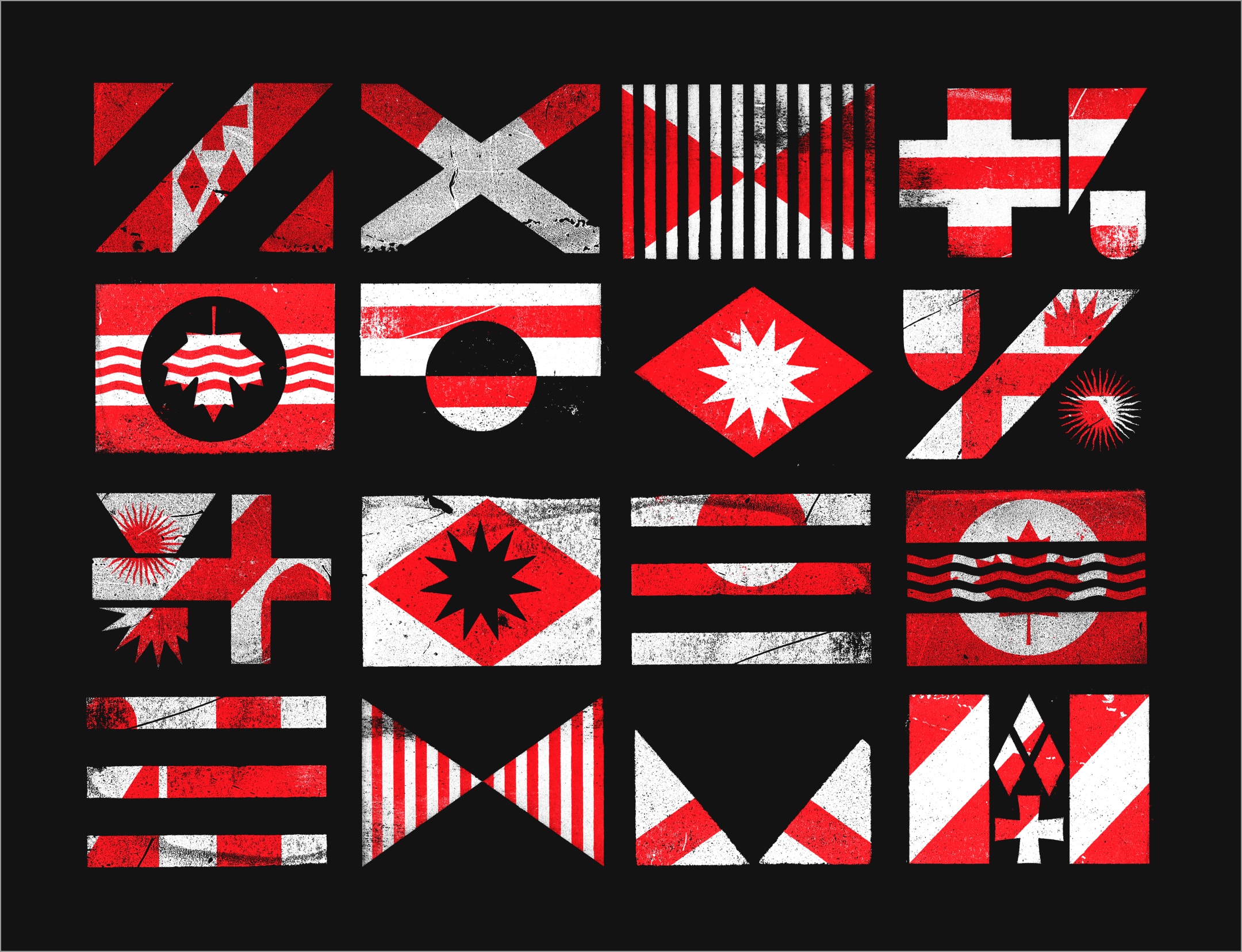 Inspired by the shapes in flags from around the world, we removed the colors and broke them down into pieces, creating a unique set of visuals that appeal for universality and unity beyond any real or symbolic boundaries.