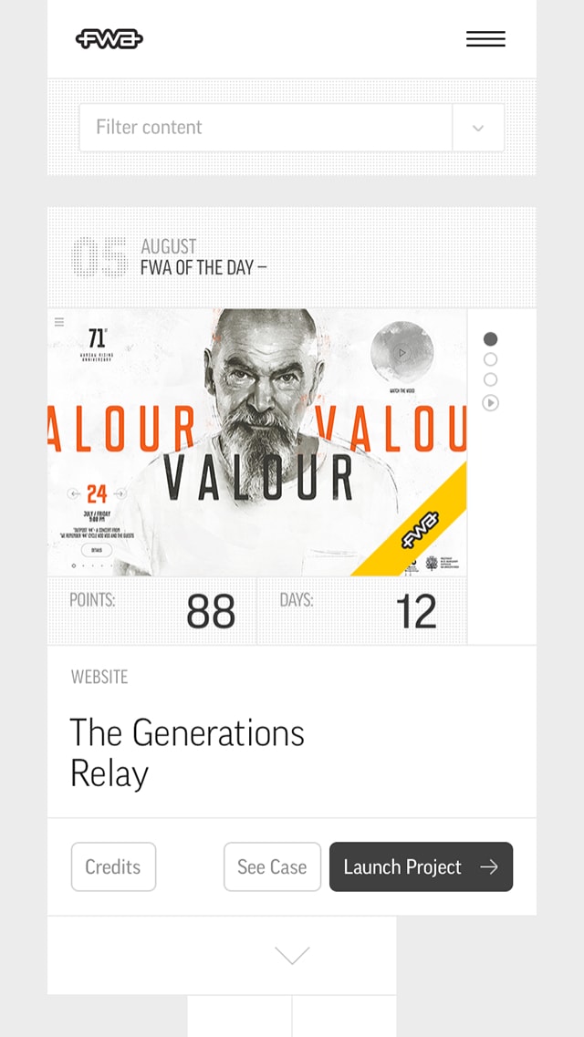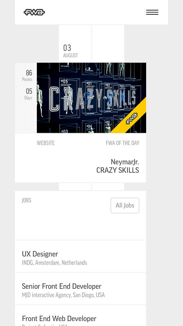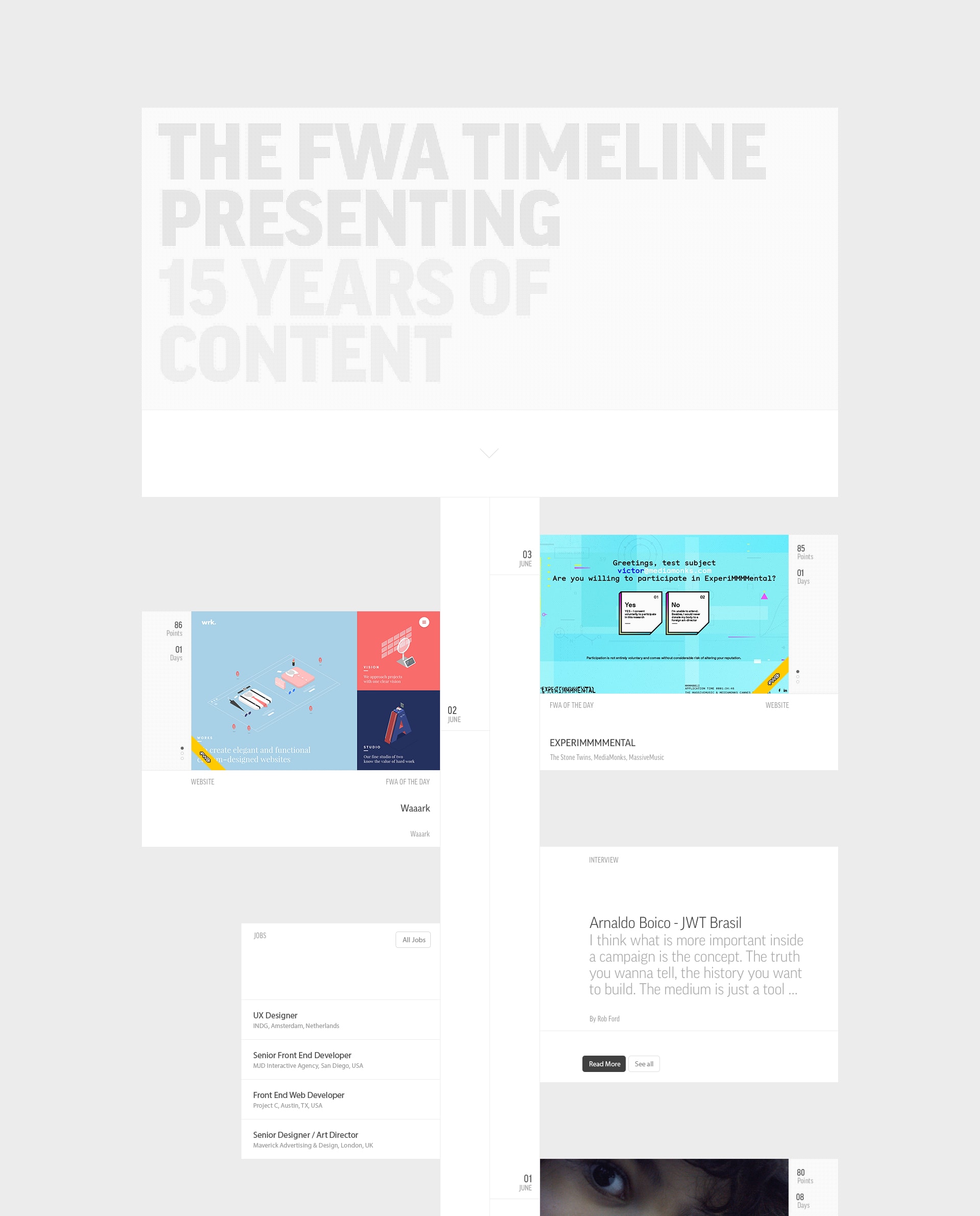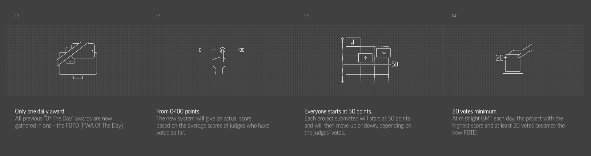 Everything on the site is built on top of the existing and iconic visual language of The FWA.