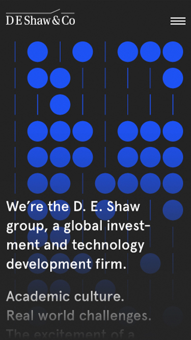 We collaborated with them to create a concept loosely based on academic papers. We added simple yet meaningful elements as well as unique and unexpected moments to ensure the right feel. We updated the copy to better reflect the unique, thoughtful people they are. Ultimately, we created a website that portrays the D. E. Shaw group as they see themselves: unconventional, analytically rigorous, and most of all, an industry leader that values its people over its computers.