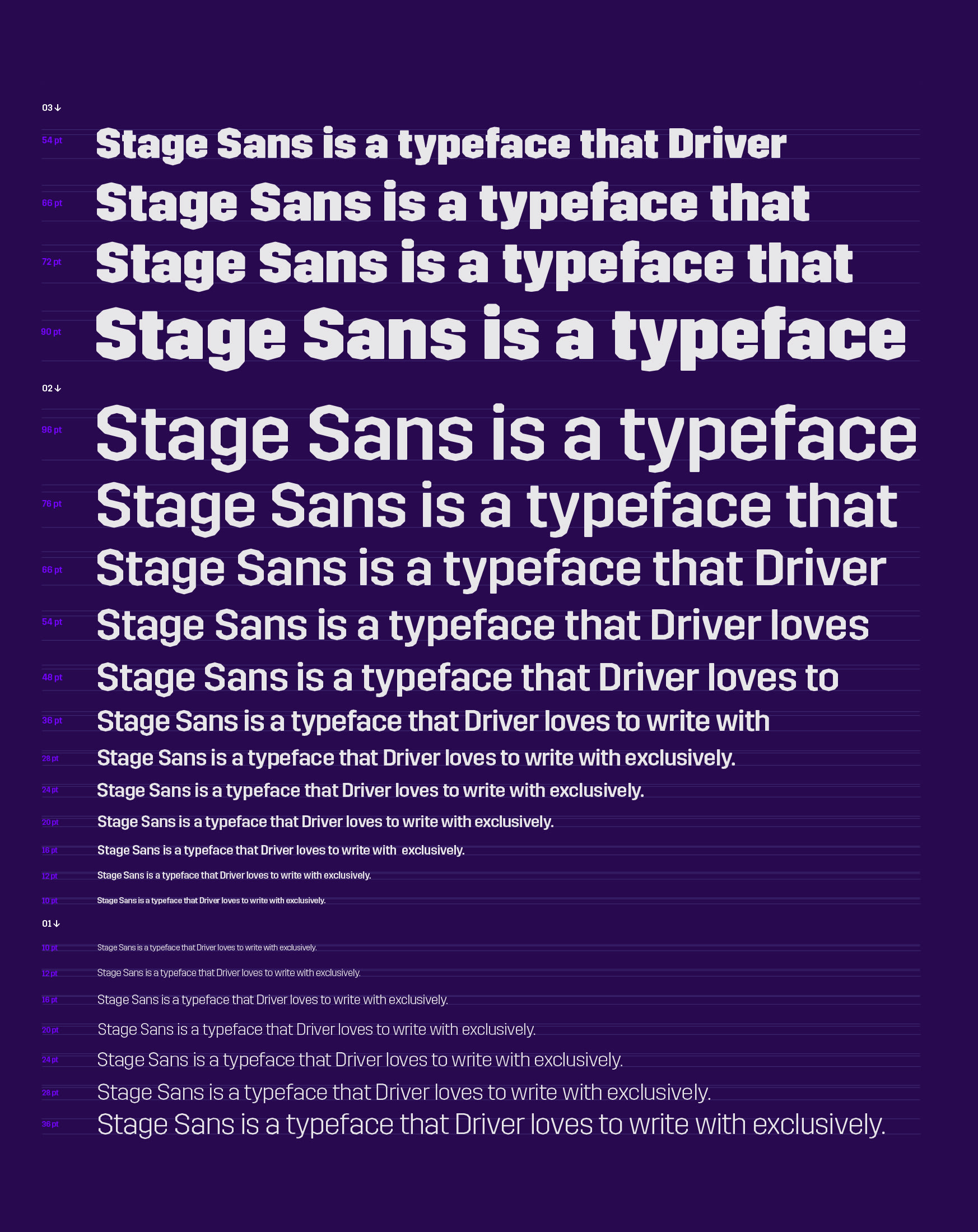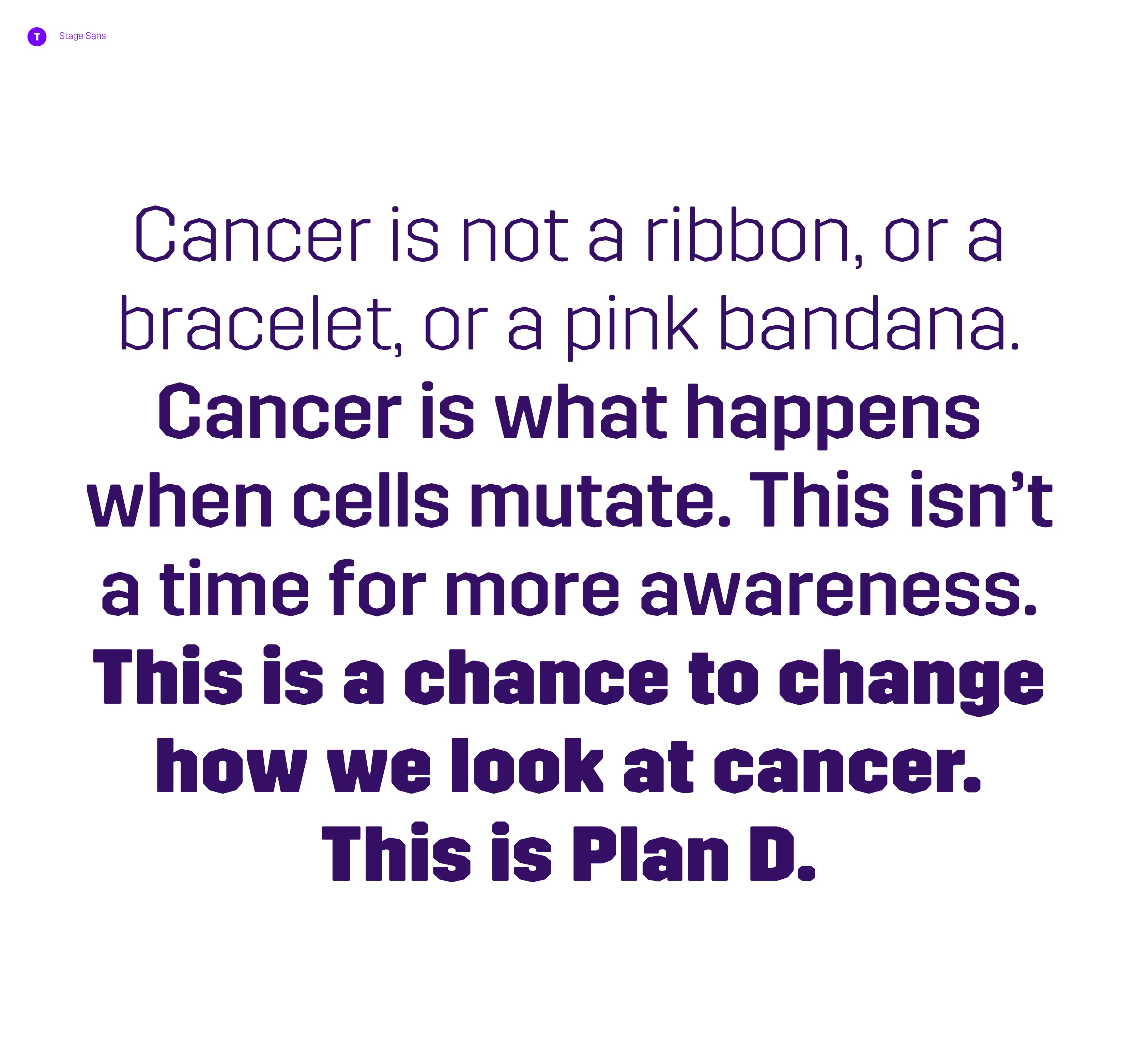 Stage Sans is inspired by the key shape found in a DNA string – a polygon. It’s designed to feel bold and distinctive when seen at display sizes, and is used to command attention.