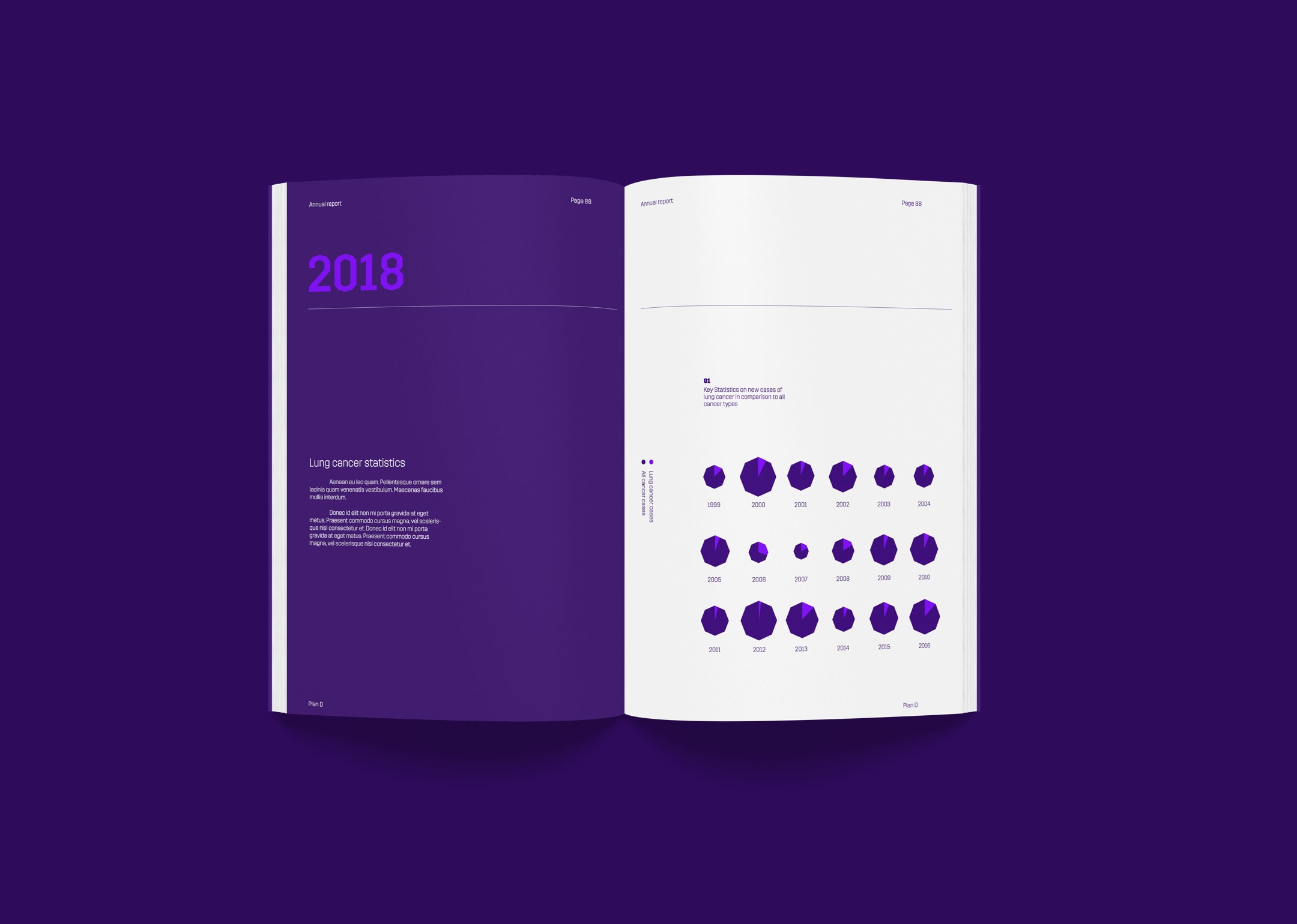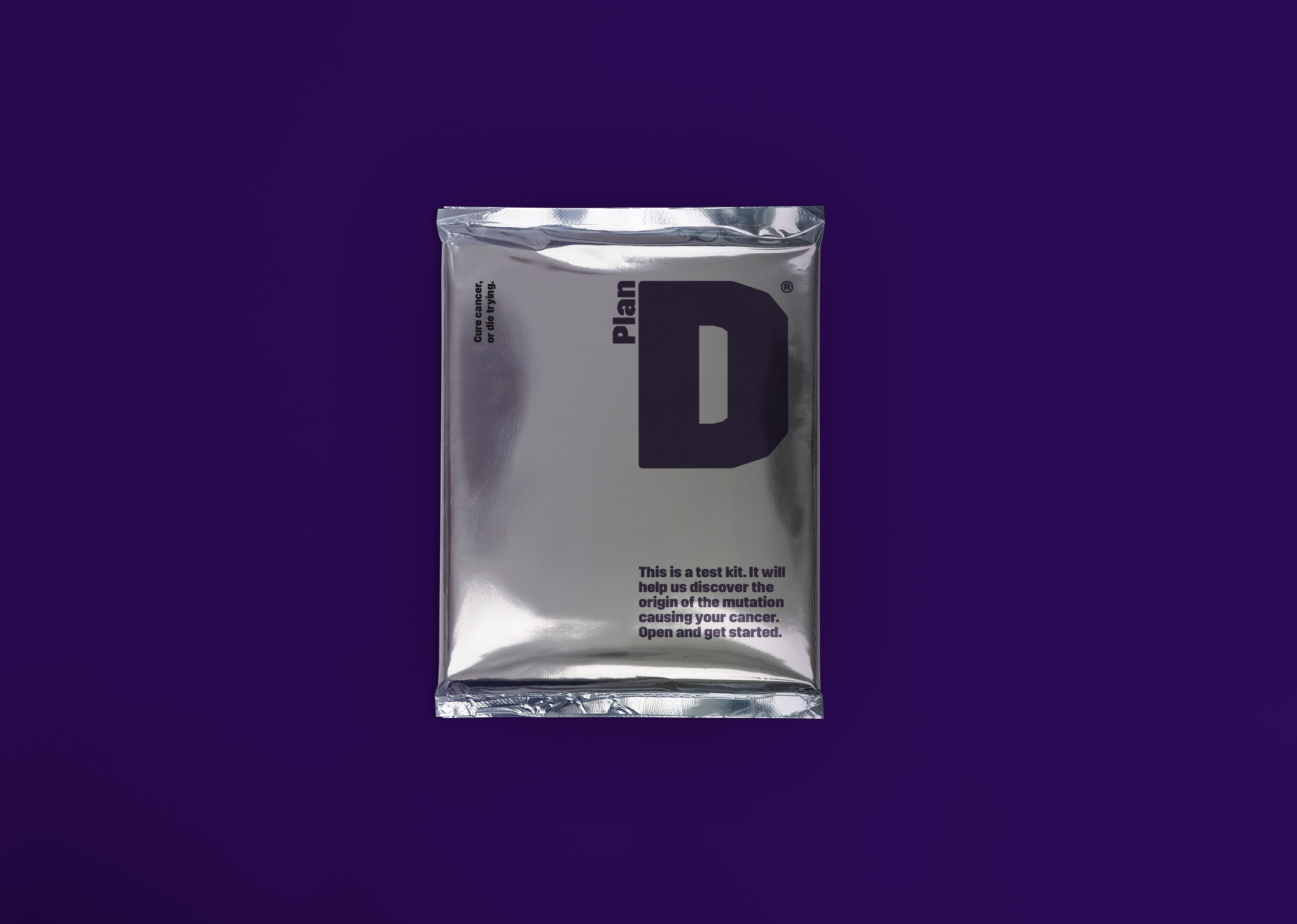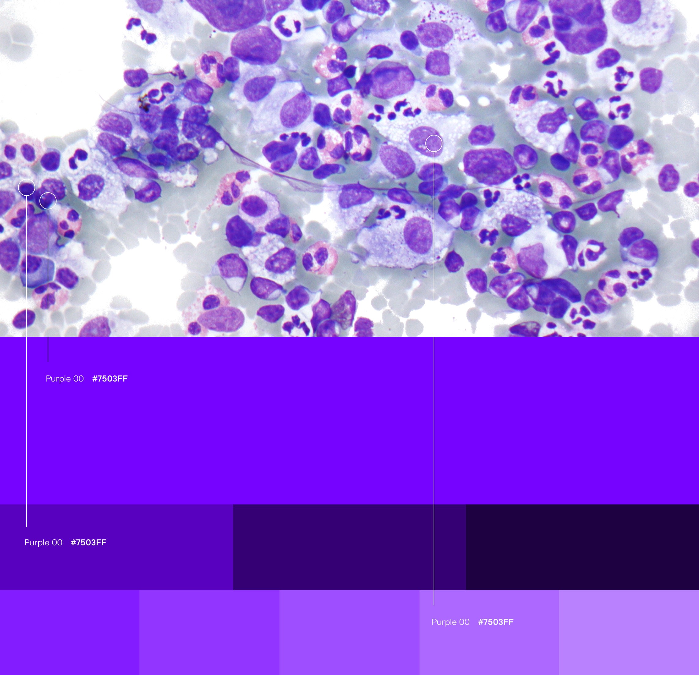 The color scheme is inspired by the purple fluids of a DNA extraction process for detecting cancer. The brand color also refers to the general cancer awareness color: purple.