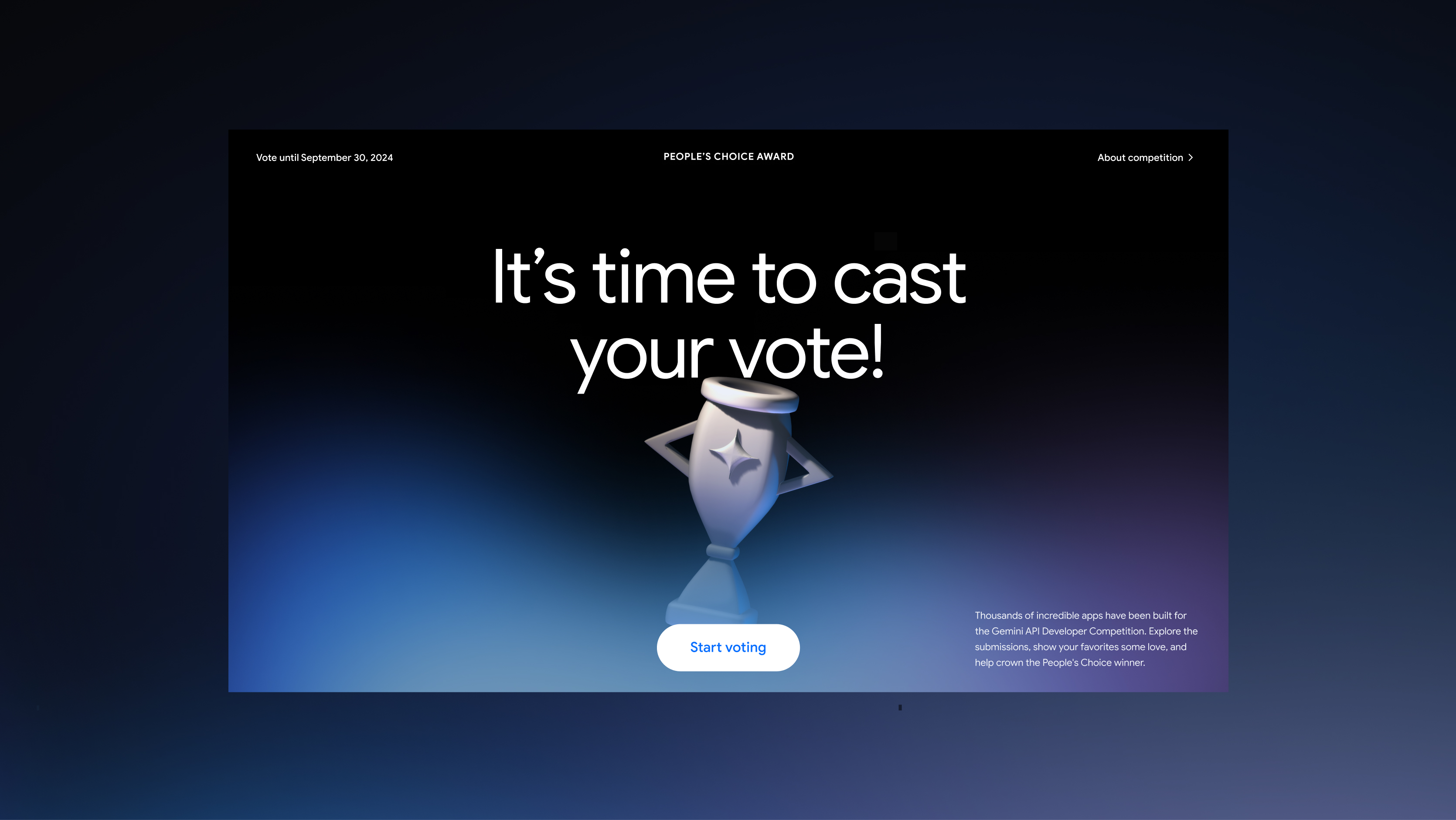 To maintain engagement after the competition closed, we introduced a People's Choice Award. With over 350,000 votes cast, participants enjoyed exploring and voting for their favorite projects.