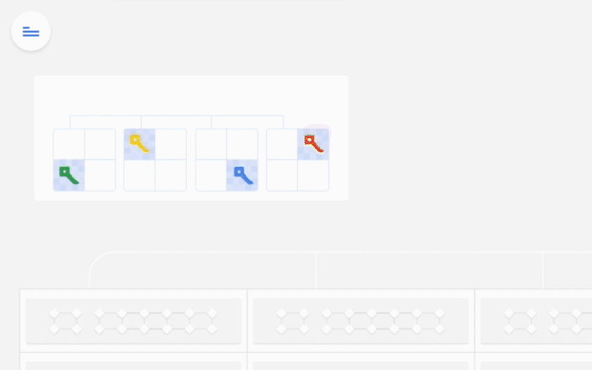 An especially challenging part was to create different visual systems to represent software elements, data states and other logical information that doesn’t have a physical shape or a universal depiction. Some of these elements were data queries, data in motion, kubernetes’s container systems, encryption keys, data chunks of data nodes.