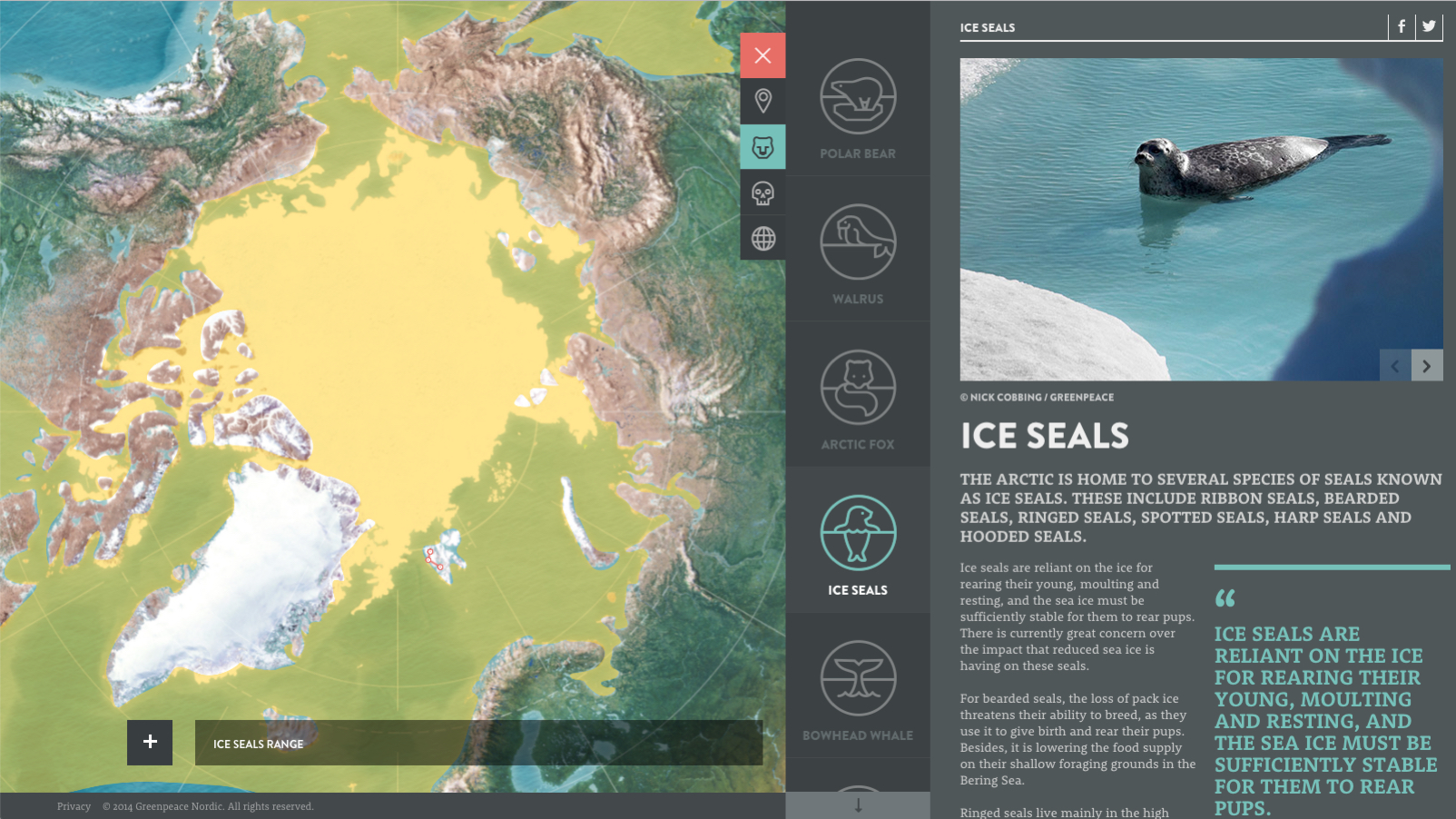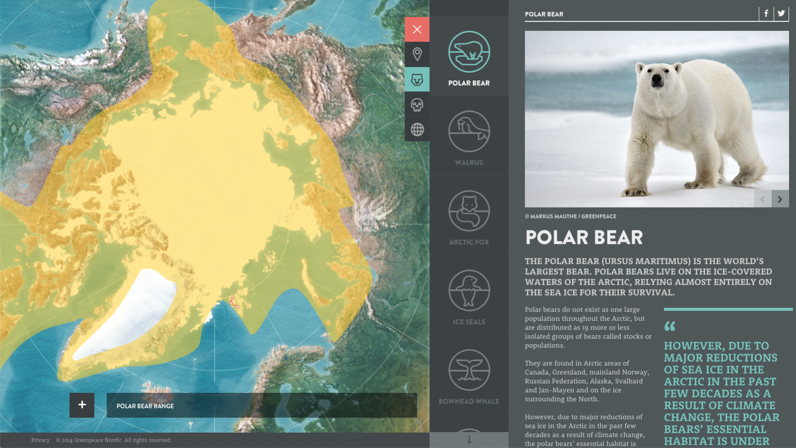 Greenpeace needed a place where people could follow their journey through the Arctic and to highlight the threat caused by the oil industry. We created a site that acts as a dynamic logbook, documenting each expedition from start to finish. Users get daily updates from the activists, learn about the region’s history and wildlife, and sign a petition to ban drilling in Arctic waters, for good. In the end, a seemingly distant problem is brought directly into people’s living rooms, and Greenpeace can gather new support as its message spreads. Almost 8 years later, it seems that this cause is more relevant than ever.